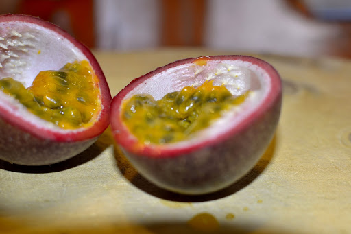 Chuck all the passion fruit pulp, including seeds, into a blender and blend for about 20 seconds.