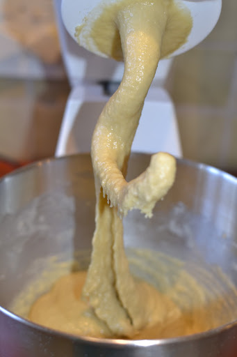 *Keller uses all-purpose flour, something we don’t have so I used stone ground cake flour instead. This has more body than regular cake flour and tends to take more liquids.