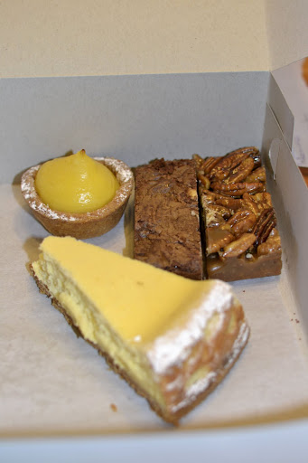 I bought two more desserts so I could give you a general idea of what’s in store if you visit. The cheesecake is tart with lemon but has a texture rather akin to peanut butter. You know when the peanut butter sticks to the roof of your mouth? That happens with this cheesecake. It’s not necessarily a bad thing but today just felt too heavy. It also crumbles on you which I dislike. I want a slice that holds itself together as I eat it. But it does have a biscuit base which earns it major points. (I once had to make cheesecakes with sponge bases. I cannot begin to describe how much I despise them.) The other pastry I purchased was a lemon polenta tart. I love lemon and the curd in this tart is great. I especially love the use of polenta in the base which adds a crunch that perfectly balances the sweet, smooth curd. Yayness all round.