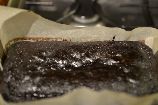This is a store-cupboard recipe. Which is great because I discovered we have completely run out of 70% chocolate of any kind. The only chocolate in the house was the trashy, sweet, milky plain milk chocolate. Great for snacking on, not so great in desserts. But it’s okay because Nigella has a cocoa based recipe here to which you add chocolate chips. Yay! Crisis solved. Now if I can just think of what to serve as the main meal…