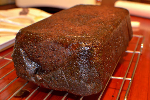 Pour the mixture into the loaf tin and bake for about an hour. You want the cake to be cooked but not overdone. The cake should be stable but it’s okay if there is some batter on the skewer.