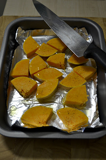 It wasn’t a terribly exciting dinner, just roasted butternut salad. But everything about it was superb. I roasted the butternut with the skin on. I’m sometimes partial to skin, sometimes not. I left my peeler back home (I question now why) so skin on seemed miles easier. I drizzled it with a little olive oil and some black pepper. If you have garlic to hand (I don’t yet) I’d throw some cloves in too.