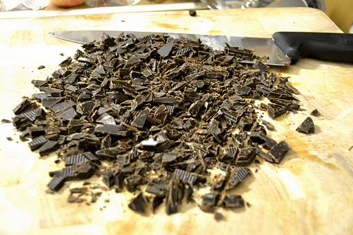Mix in 100g dark chocolate chips. (I just chop up some good quality dark chocolate because I dislike chocolate chips – they tend to be poor quality chocolate.)