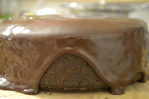 Place all the ingredients in a bowl and microwave in batches of 30 seconds until the chocolate has melted and the mixture is smooth. If it splits, add in a extra tablespoon of creme fraiche and stir until it comes back together. It shouldn’t split, but you never know. Pour this over the banana cake and allow to set before slicing. I only made about half the original amount suggested because I like less icing rather than more.