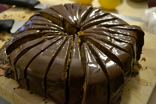 Upon my return home I discovered that I’d only bought half the quantity of bananas needed for the recipe. Whoops. Still, I sallied forth, putting years of training to the test by making the recipe with half the required amount of bananas. Personally, I find the method a little weird and I doubt I’ll make it this way again but it did work so clearly these people know more than me about banana cake. I also used a crème fraîche, double cream combination instead of sour cream – only because I had them to hand but actually it worked out super well. The cake was moist and banana filled, despite the low quantity. It’s dense and heavy. The chocolate icing is dark and slightly bitter which pairs well with the cake. My classmates managed to finish it in a fairly short space of time so it’s clearly a crowd pleaser. Good for when you’ve bought too many bananas…