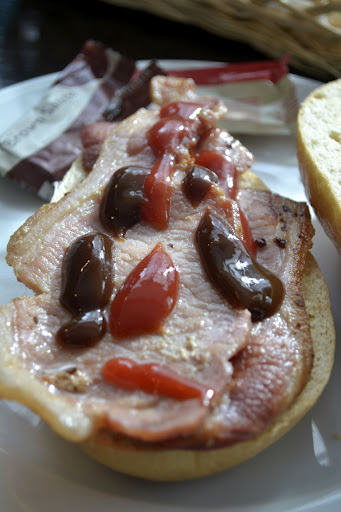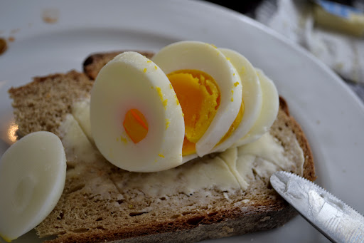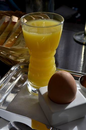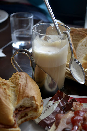 I’ve been dying to visit this bakery for years and years and I finally got around to it last Saturday. We went for a late breakfast – it turned out to be lunch but you know, breakfast can be eaten at any time of the day. I ordered blind, not having read the menu and opted for the full breakfast. This comes as a bacon roll, tomato and brown sauce on the side, a boiled egg, bread basket and orange juice and coffee. A completely winning breakfast, which meant I didn’t need to eat again until tea time. The bread is fantastic and after sampling their bread basket you can buy a loaf or two or, if you feel inclined to eat anything later, one of their cake slices or pastries, all of which looked amazing. (We didn’t sample – being ridiculously full and baking cake later).