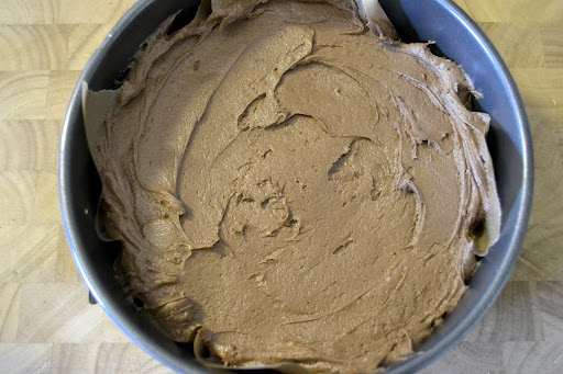 Spoon the mixture into the cake tin and smooth with a palette knife.