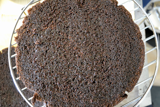 The cake fell apart when I sliced it into thirds and had to be assembled in it’s tin so that it could be supported. (And patched back together).