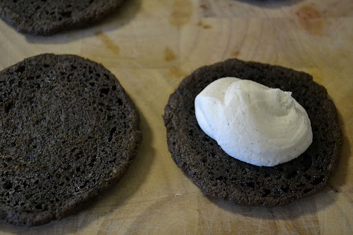 But I never seem to try to recreate store bought cookies at home. I’ve never been inclined to make Jolly Jammers or chocolate digestives or anything. But I was perusing Smitten Kitchen’s website again (work avoidance behaviour I think it’s called) and I came across this recipe for Oreo’s. Now, I’m a big Oreo fan. I can almost eat an entire box in one sitting. Almost. The box never really lasts more than a day or two in my house. So I don’t buy them that often. But when I do they are such a treat. The dark saltiness of the chocolate, the creamy filling. The way it all sticks to the roof of your mouth like peanut butter. (They’re not bad smothered in peanut butter either…) So obviously I had to try the recipe.