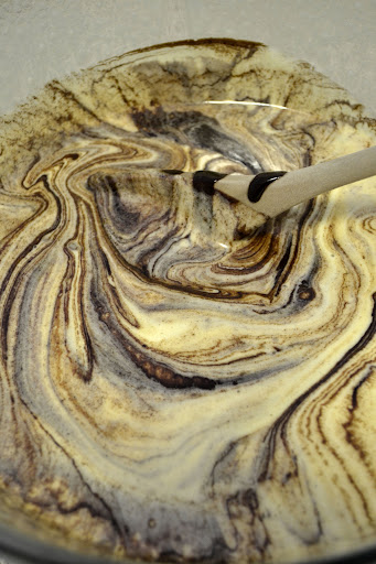 Pour the chocolate mixture into the egg mixture and fold together until the mixtures are fully incorporated.