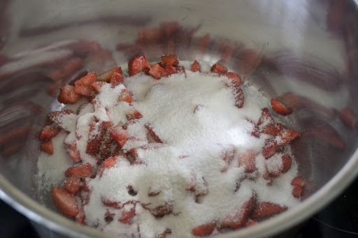 To make the compote, roughly chop 200g of the strawberries and place in a pot with the sugar. Leave them for 15 minutes to absorb some of the sugar. Put the pot on a medium heat, add in the lemon juice and bring to the boil. Boil for about 6 minutes, until the mixture has reduced slightly, has become syrupy and the strawberries have started to break up. Remove from the heat, pour into a heat-proof container and allow to cool completely before refrigerating overnight.The next day, halve or quarter the remaining strawberries (depending on size) and add them, together with the elderflower cordial, to the compote. Give everything a good stir and set aside.