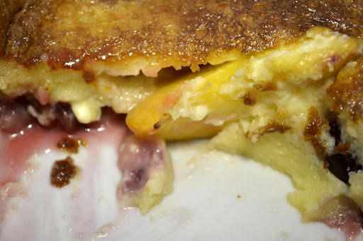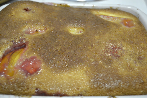 I’ve never been a huge fan of clafoutis, mostly because for much of my life I haven’t been a big fan of cherries and the two seem to go hand in hand. I suspect my aversion to cherries is related to the canned, extremely sour variety that were a feature in my childhood. (Growing up in South Africa in the 1980’s is a food experience I wish on no one.) But fresh cherries are a revelation – sharp, sweet, juicy – and even though I didn’t quite get through the ones I bought a clafoutis is a rather good place for them. I’m not a big mixer of fruit – I dislike fruit salad with a vengeance – so I carefully ate my way through cherry mouthfuls and then nectarine mouthfuls. It was beautiful, almost two different desserts. The clafoutis was light as air, the fruit just soft, bursting with flavour and sticky juice. This is a dessert for sharing although you can keep it all to yourself…