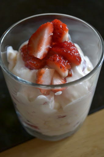 I visited a friend over the weekend who grows strawberries in her garden. On Sunday evening because the weather was rather lovely we spent some time picking the strawberries. They were juicy, red and delicious. I made some of them into an Eton Mess, which is one of my favourite summer desserts. It’s quick, simple and tastes fantastic.