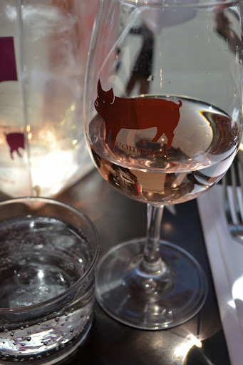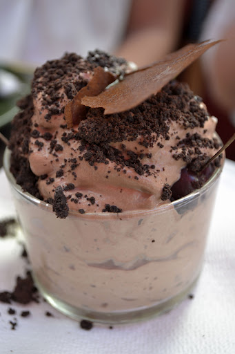 We split dessert, a chocolate mousse, light, creamy, bitter, interrupted by sour rhubarb jelly. I’m not a fan of rhubarb but in this dessert I may be persuaded to it’s uses. The cacao crumble was dark and bitter. We people watched and chatted – the restaurant is on a busy street and there is plenty happening all the time. The queue finally ebbed off at about 4.30pm and we finally finished up at around 5.30pm. It was a fabulous way to spend the late afternoon. I’d like to visit again, to order the pea tartlet and to try other things off the very extensive menu.