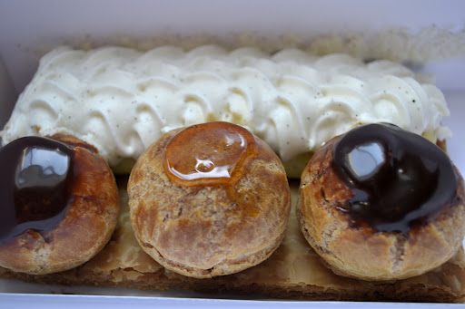 Finally we went to Jacques Genin. Visiting this pastry shop is rather like visiting a library or church. We spoke in whispers, everything was quiet, almost revered – it was like a sanctuary for pastry. We sampled mango caramels that liquefied almost as soon as they touched your tongue, coriander chocolate, tonka bean chocolate and fresh mint chocolate, pâte de fruit, a caramel eclair, a lemon tart and finally, a raspberry tart where each raspberry was filled with coulis. We returned to the shop after the tour ended to buy more caramels (they’re truly amazing) and a St. Honore. We ate the St. Honore for dessert that evening. It’s puff pastry base was crispy and crunchy, each profiterole was filled with something different (custard, caramel, chocolate) and then the pastry cream and crème Chantilly just about finished us off. The tour was fun but I wouldn’t pay that much again, not unless I got to see behind the scenes in some places or spoke more with the producers or there was much for information about the history of the places we went.