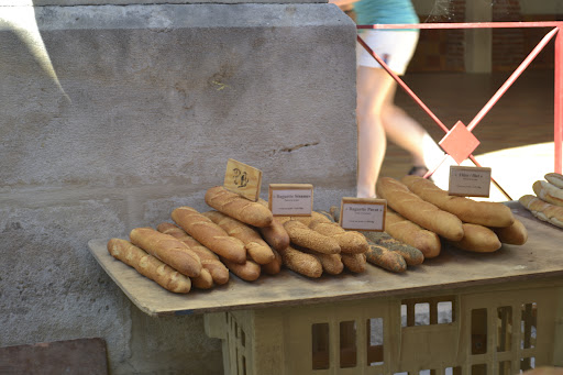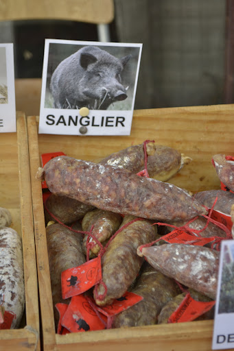 I was in France again recently, just for a few days, hanging out at a lovely house near Le Temple sur Lot. On the Friday we went to this market in a town who’s name I now cannot recall. It was a typical small town market, the kind where you can buy anything and everything, from jeans to table cloths to bread to live chickens. We wandered around just looking, often with wide eyes, at all the different things on offer. The colours in the market are just spectacular and half the reason to go. I was particularly interested in all the different meats and fish on sale. There was more selection than you’d find in the average supermarket that’s for sure. The window boxes all over town were pretty lovely too.