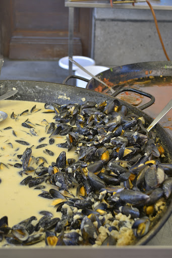 I was in France again recently, just for a few days, hanging out at a lovely house near Le Temple sur Lot. On the Friday we went to this market in a town who’s name I now cannot recall. It was a typical small town market, the kind where you can buy anything and everything, from jeans to table cloths to bread to live chickens. We wandered around just looking, often with wide eyes, at all the different things on offer. The colours in the market are just spectacular and half the reason to go. I was particularly interested in all the different meats and fish on sale. There was more selection than you’d find in the average supermarket that’s for sure. The window boxes all over town were pretty lovely too.