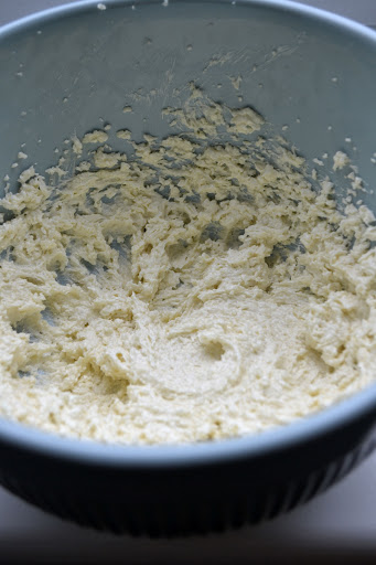 Add the flour in three batches, alternating with the buttermilk mixture. I folded this all in by hand, rather than mixing it with a beater – mainly because my beater has only one speed and things tend to end up more out of the bowl than in…
