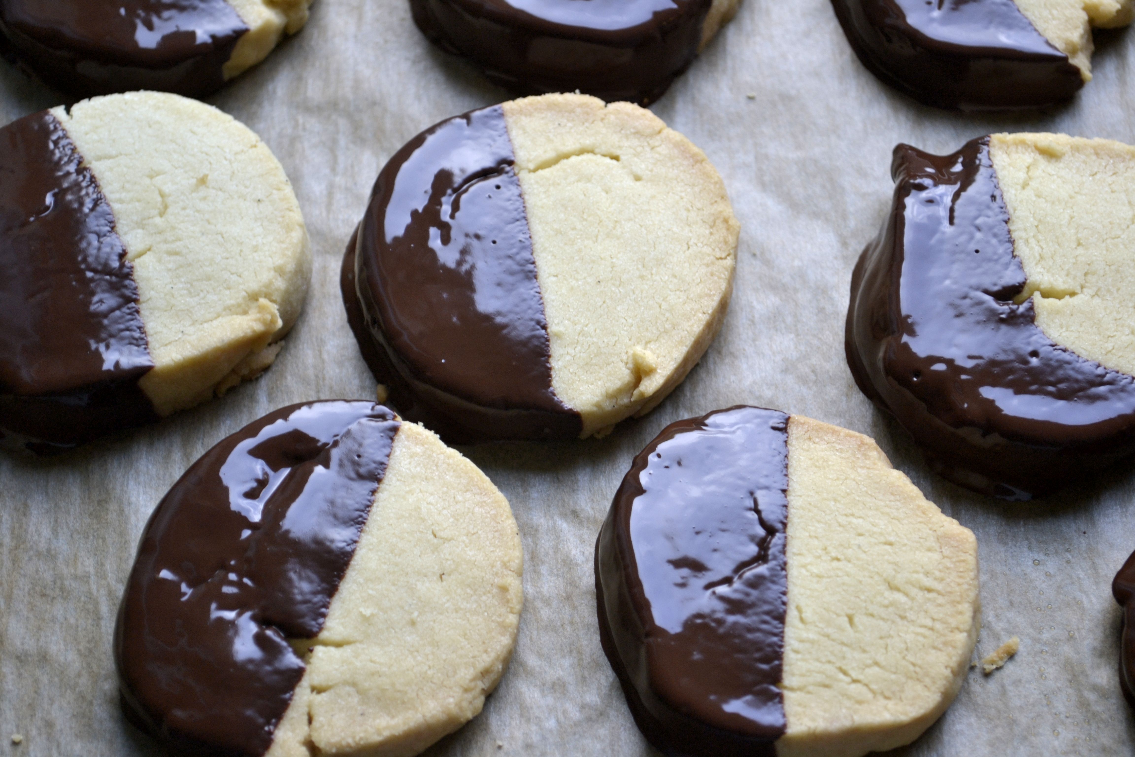 Once the cookies are cool, melt the chocolate (I used about 180g in total – dipping is easier with more chocolate and if you have any left just spread it onto some baking paper and then break it up and put it away for a rainy day). I always melt chocolate in the microwave but you could do it over a bain marie.