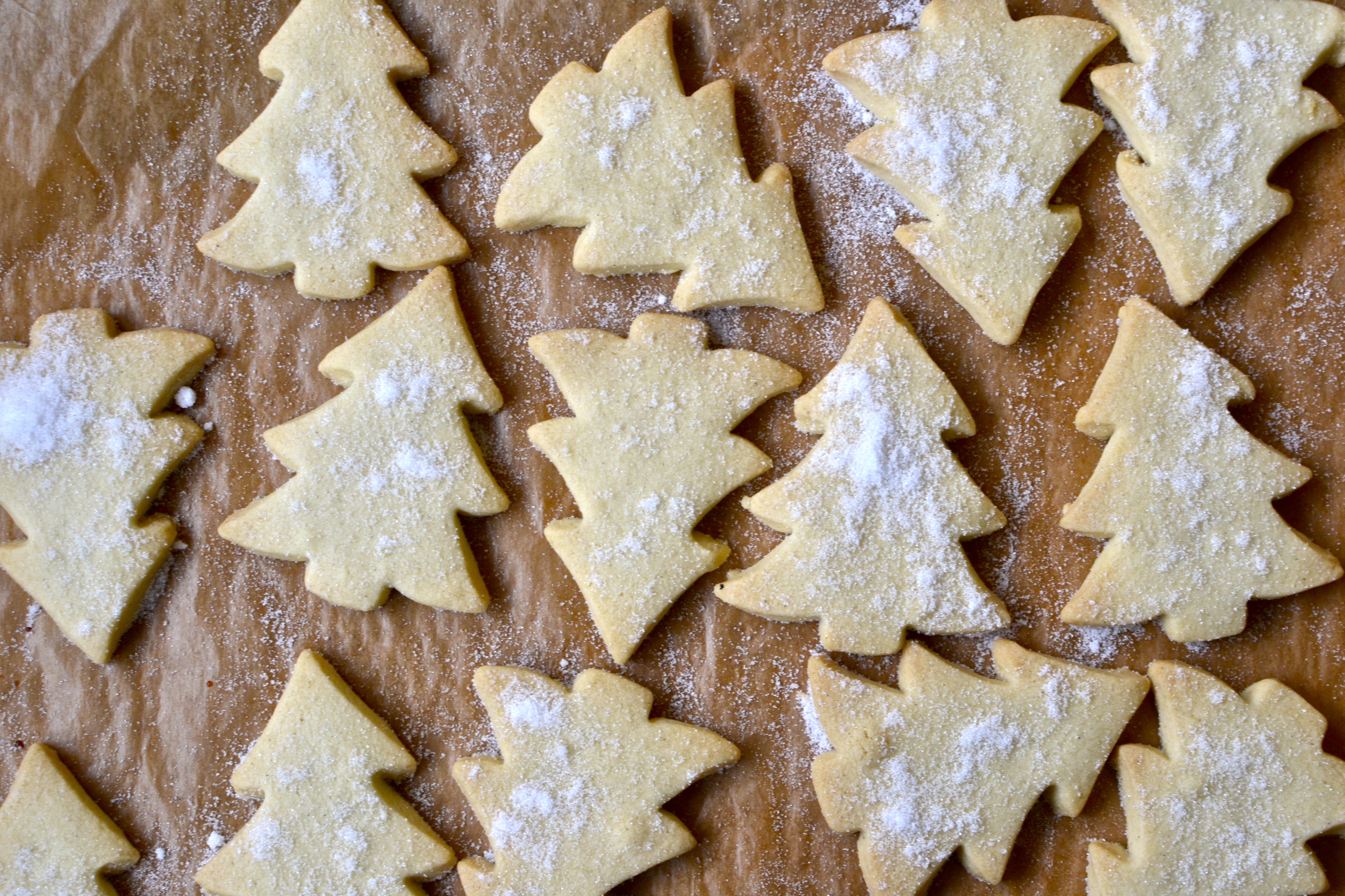 So these shortbreads. I first learnt to make them when I worked at Gleneagles. They are the pastry chef, Neil Mugg’s, recipe and he got it from his grandmother. So this is something like a 100 year old Scottish shortbread recipe. I love it. Since working with Neil I have never used another recipe and it is adaptable if you’d like to make it gluten-free*. Today I made just plain vanilla trees, but you can add in ingredients like pistachios, lavender or chocolate chips if you like. I’m a fan of the simplicity of the vanilla version, but feel free to adapt it. The quantities are scalable up or down – we used to make it in the hotel using between one and five kilograms of flour at a time, today I used the quantities below, just 250 grams of flour. This amount made 22 Christmas trees and 19 stars (of various sizes). I also changed up the method for this recipe. We used to blitz everything together all at once but I prefer to cream the butter and sugar together first.