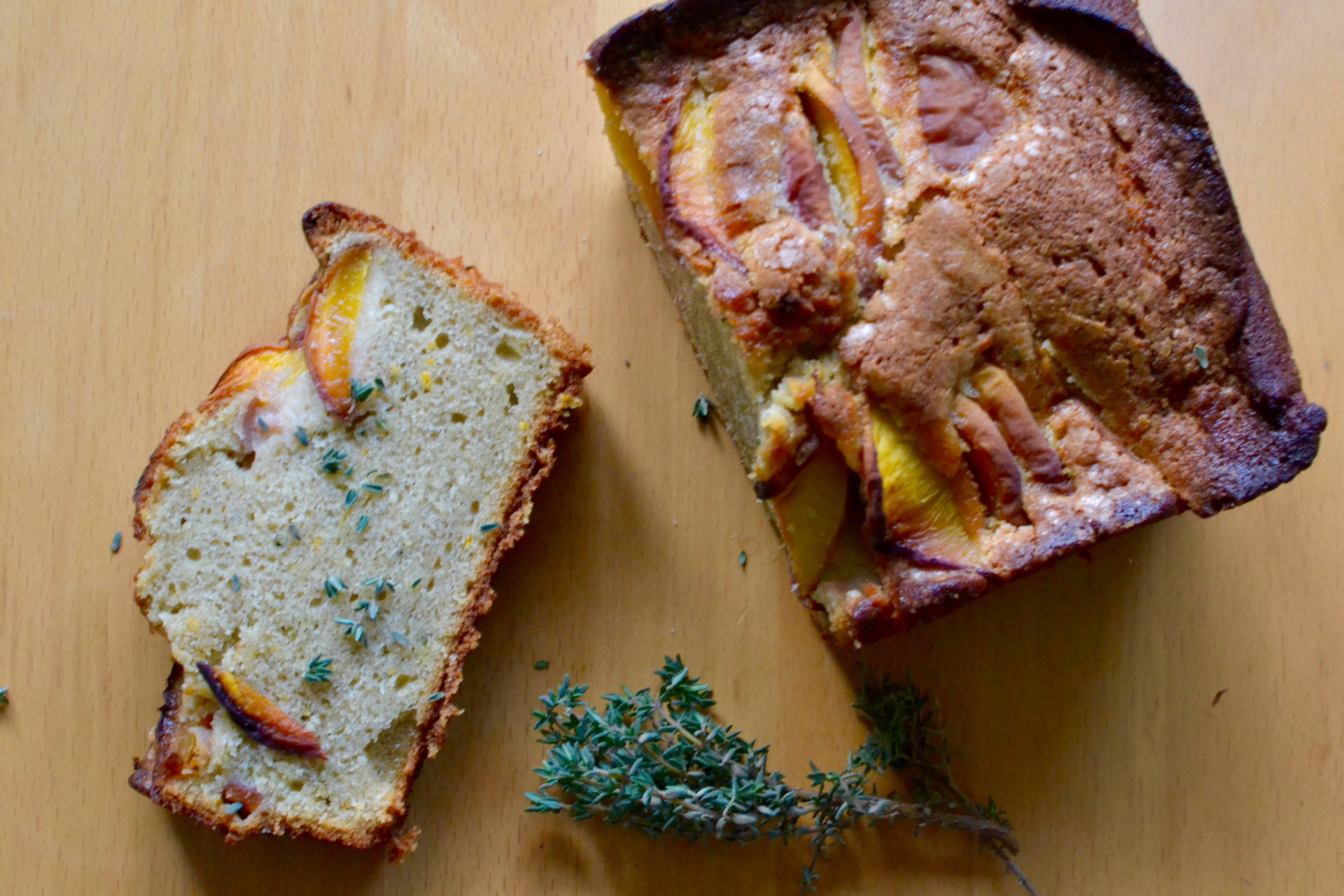 I found this cake via Instagram, which I realise sounds odd but there you go. I follow Honey&Co and on Sunday a while back they had a ‘cook along’ which, quite frankly, is just a genius idea. Basically they posted photographs of the step-by-step process of this cake and you could cook alongside with them. I was at work (#chefslife) but I scrolled back through the feed with interest. I love a loaf cake and at this time of year I’ll take anything with peaches. Their cake is made with fennel seeds (which sounds exciting and intriguing) but in my head I had this mantra going “peaches and thyme, peaches and thyme” so I decided to do a little adapting and made this instead. This is wonderful cake – good for tea – but even better a day old, toasted under the grill and slathered with salted butter. (You can ask the girls at work. They will concur.)